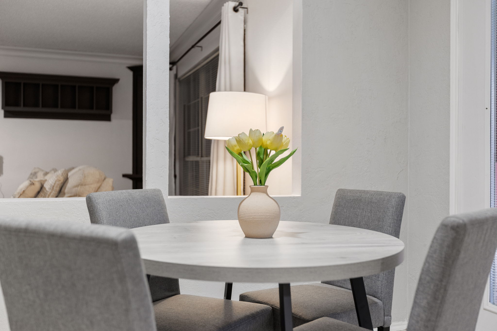 Step into a fully furnished home designed for extended stays and easy living. The main level brings together two living areas and dining spaces, so everyone can spread out — one corner for quiet laptop time, another for a movie night after work. The kitchen features an island and eat-in nook, giving you room to cook, snack, and linger over meals.