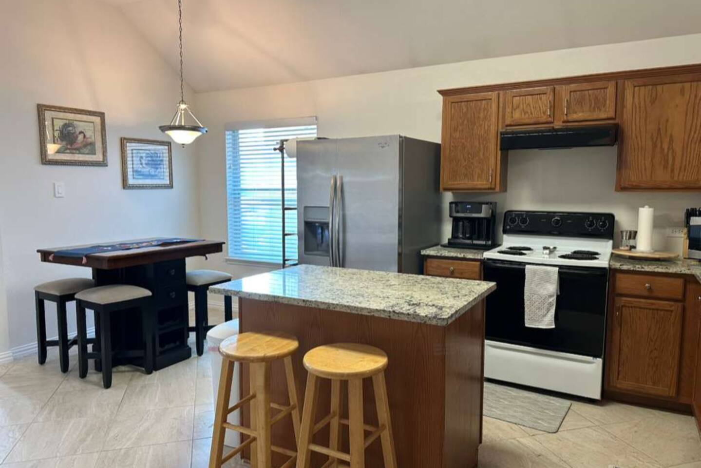 Whether you’re coming to town for a Cowboys game, Six Flags, epic Grand Prairie or just to visit friends and family, this home is perfect for you! Step into a fully furnished home designed for comfort, extended stays, and easy day-to-day living. The main level brings together two living areas and multiple dining spaces, giving everyone room to spread out—one spot for quiet laptop time, another for cozy movie nights after work.