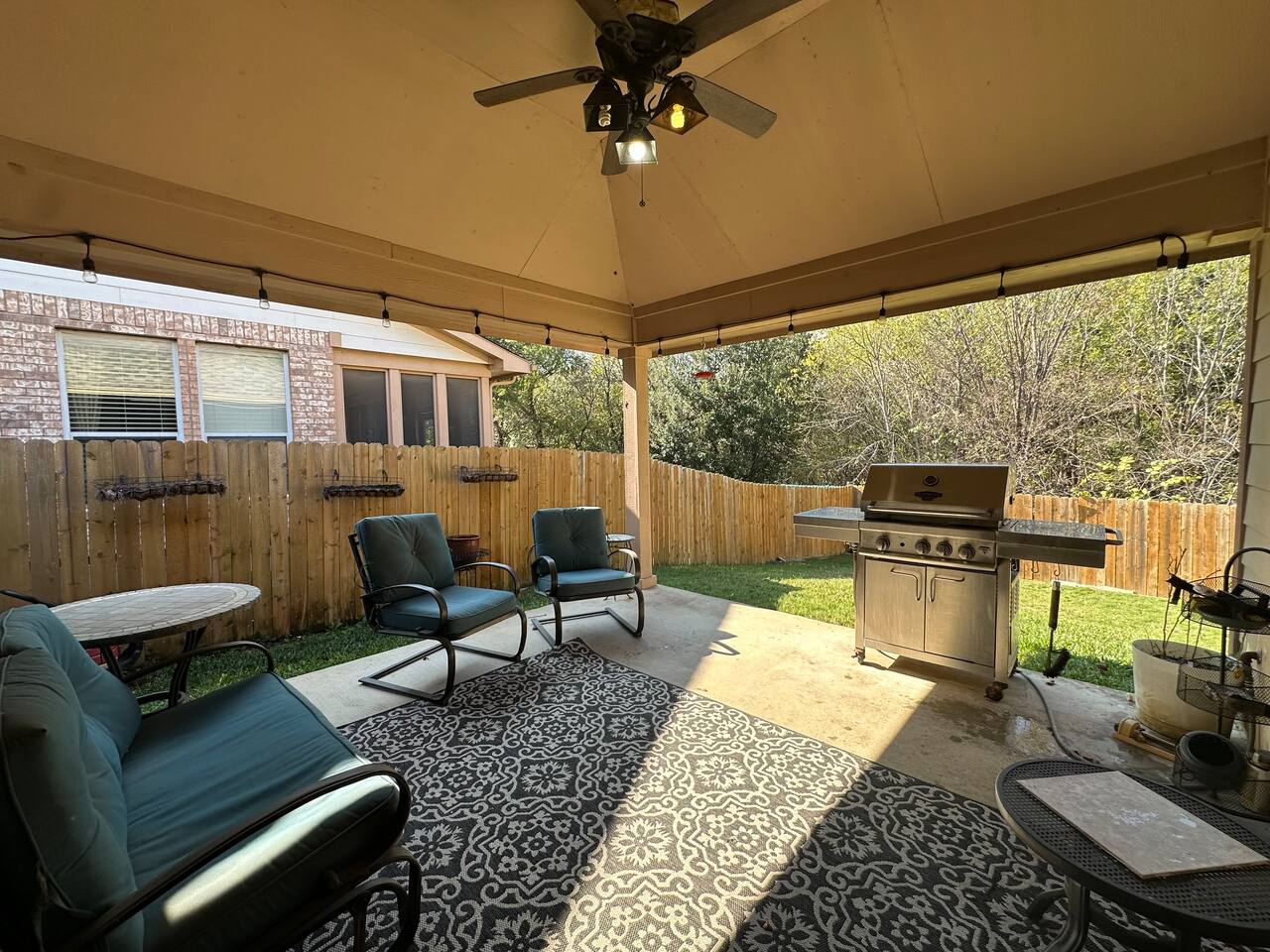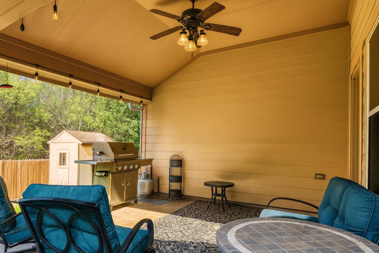 Step outside to the covered patio, a great place to unwind, hang out, and make memories during your stay.