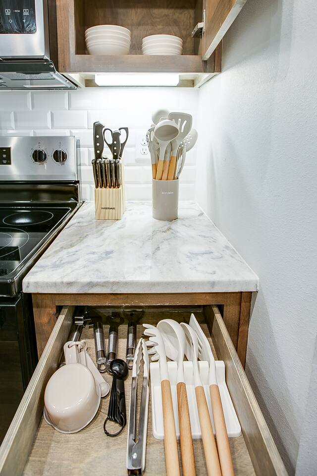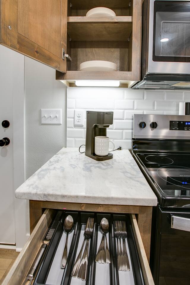 The fully equipped kitchen makes it easy to prepare anything from quick breakfasts to full dinners. With plenty of counter space and essentials ready to go, cooking at home feels simple and convenient.