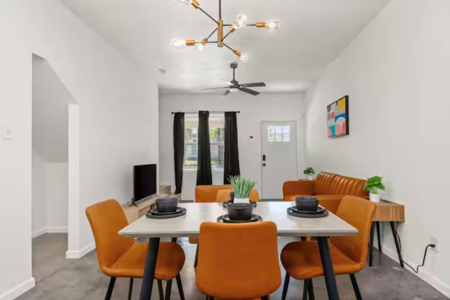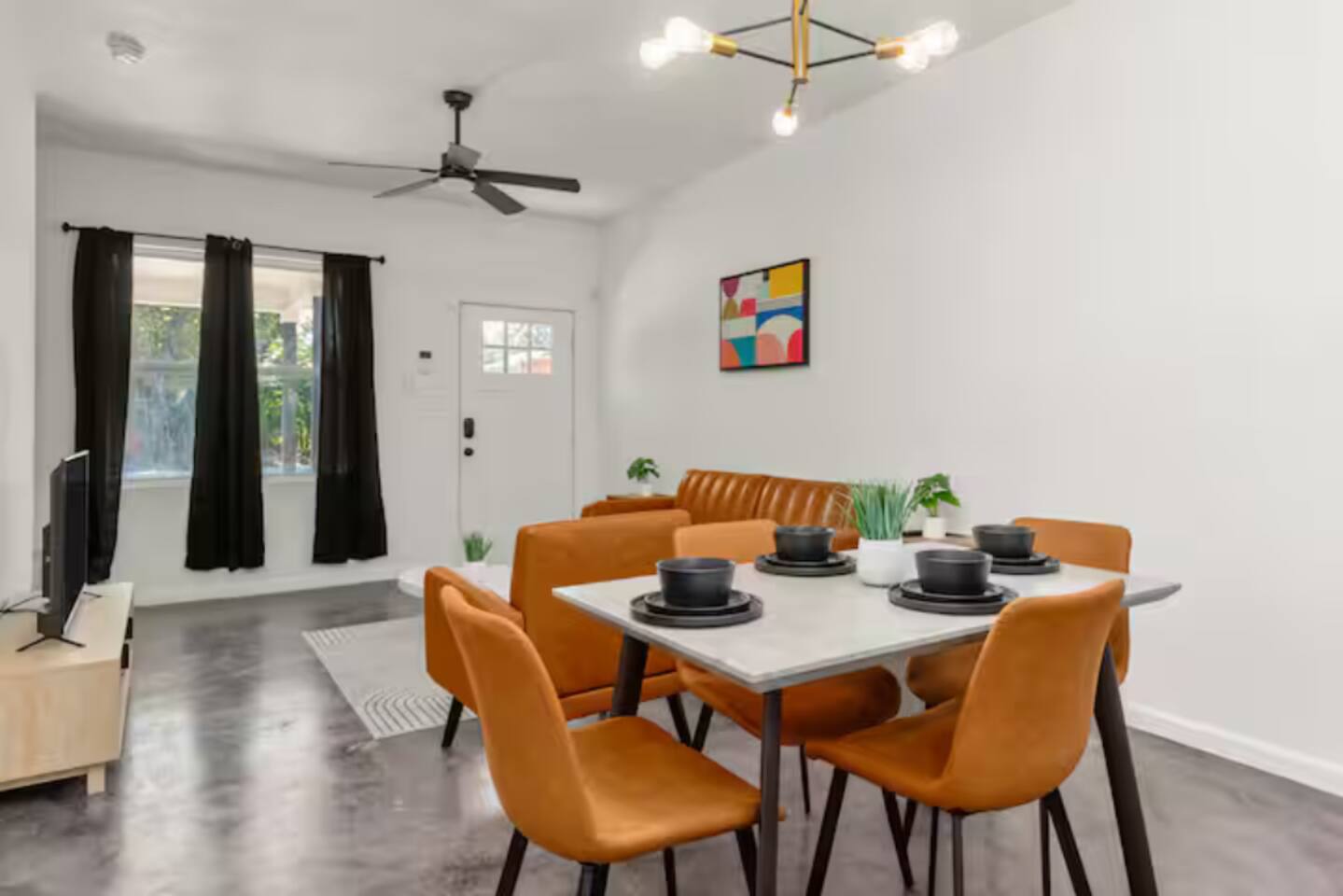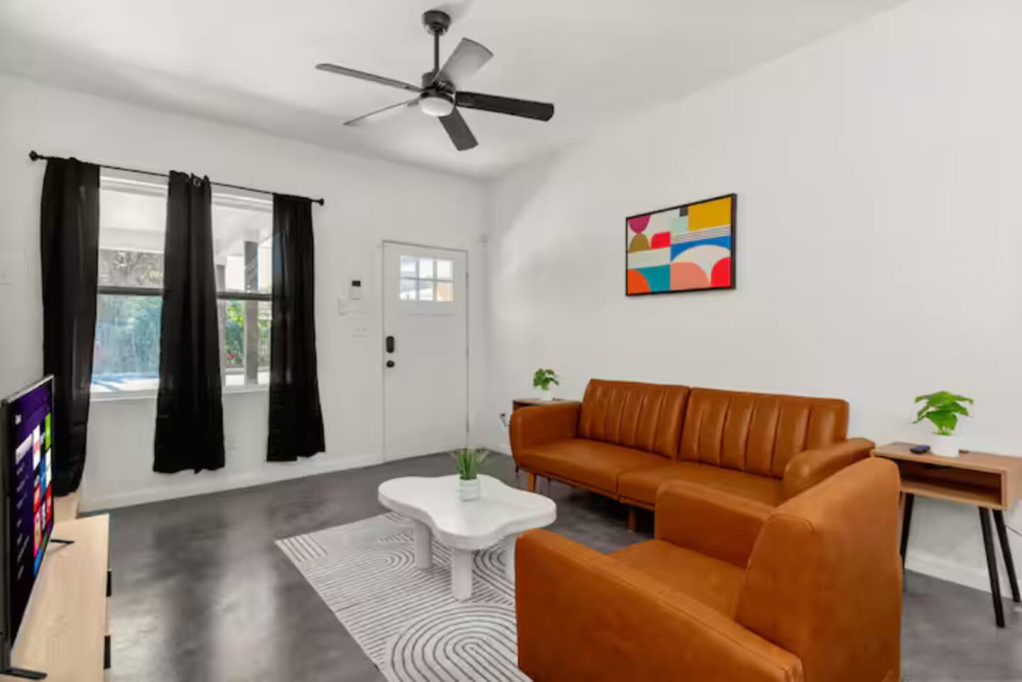 Unwind in a thoughtfully designed living space featuring comfortable furniture, smart TV, and plenty of natural light—ideal for quiet evenings after a day of work or exploration.