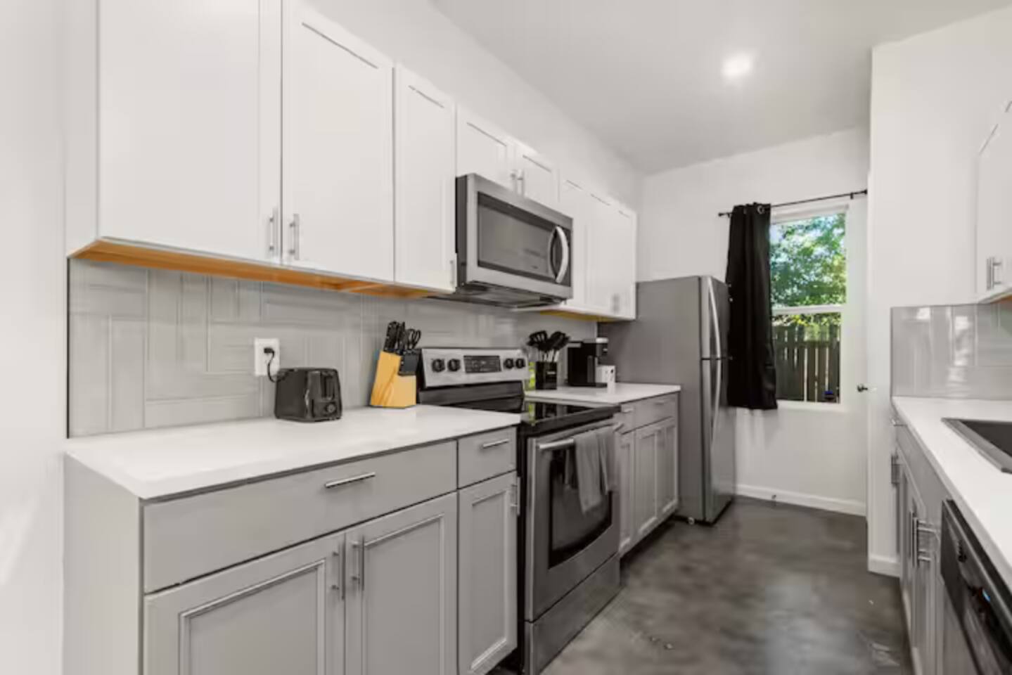 Enjoy the freedom of home-cooked meals in a kitchen outfitted with all the essentials: fridge, stove, microwave, cookware, and utensils.