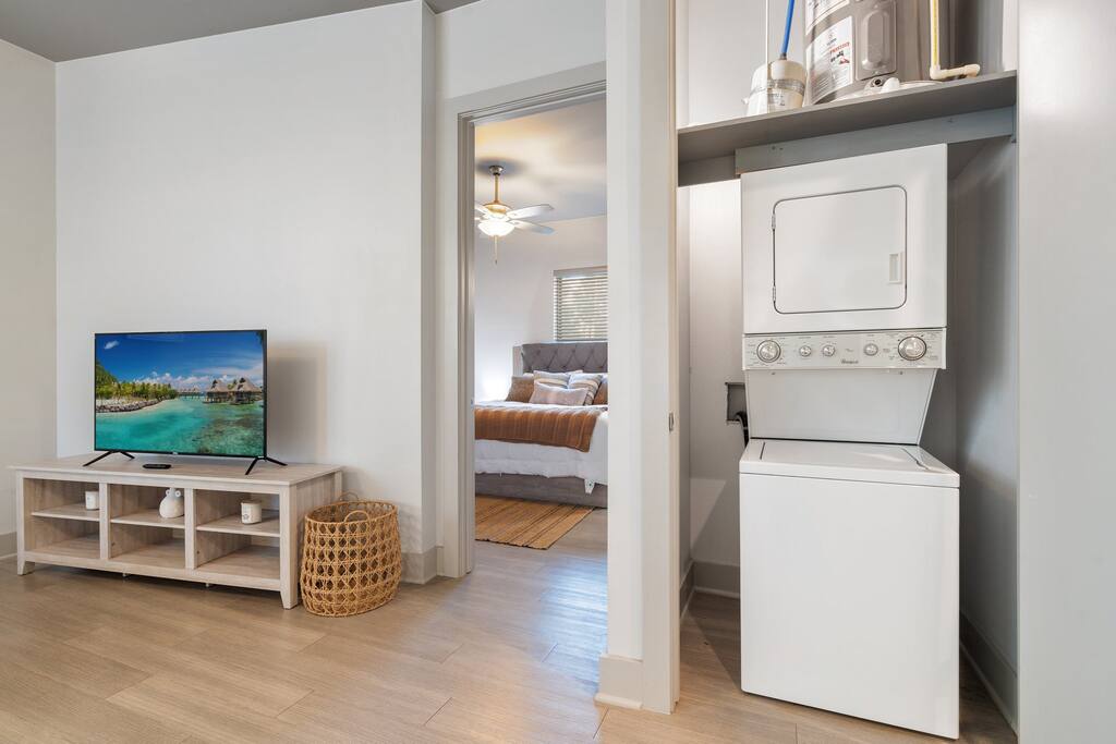 The fully-equipped kitchen comes complete with all the appliances you’ll need to whip up delectable dishes, including a microwave, dishwasher, and oven/stove top. Additional amenities such as a blender, Keurig coffee maker, toaster, and crock pot make it easy to prepare your favorite meals and beverages. A brand new washer and dryer make laundry a breeze during your stay.