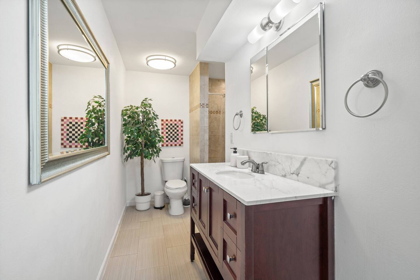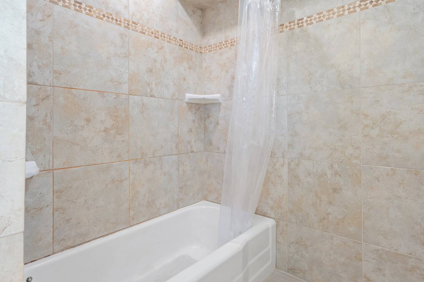 Newly renovated bathroom with shower/tub combo and spacious vanity