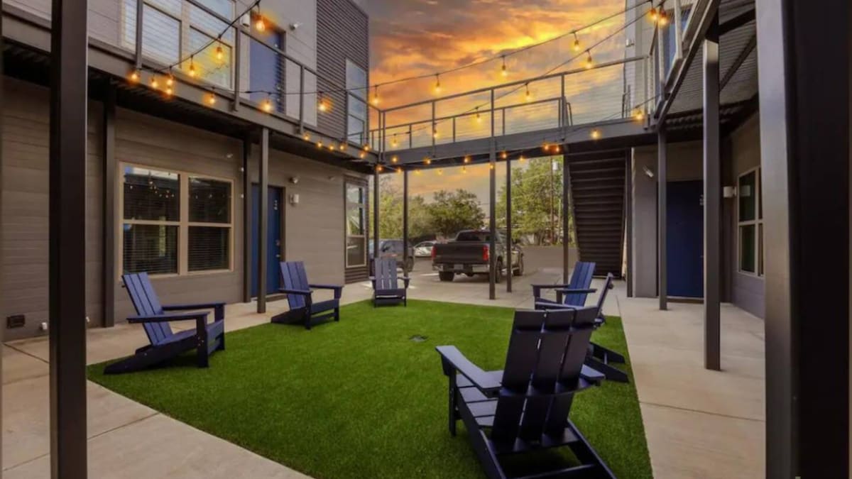 Unwind in a modern 1BR condo with a plush king bed, spa-style shower, walk-in closet, and a full kitchen that makes mornings feel effortless. A dedicated workspace and yoga mat help you stay balanced. Enjoy in-unit laundry and pet-friendly comfort. Perfect for 30+ day stays—ask about discounts! Minutes from Downtown Fort Worth, hospitals, and I-35 Smart Design Meets Relaxed Living in Fort Worth 🌟