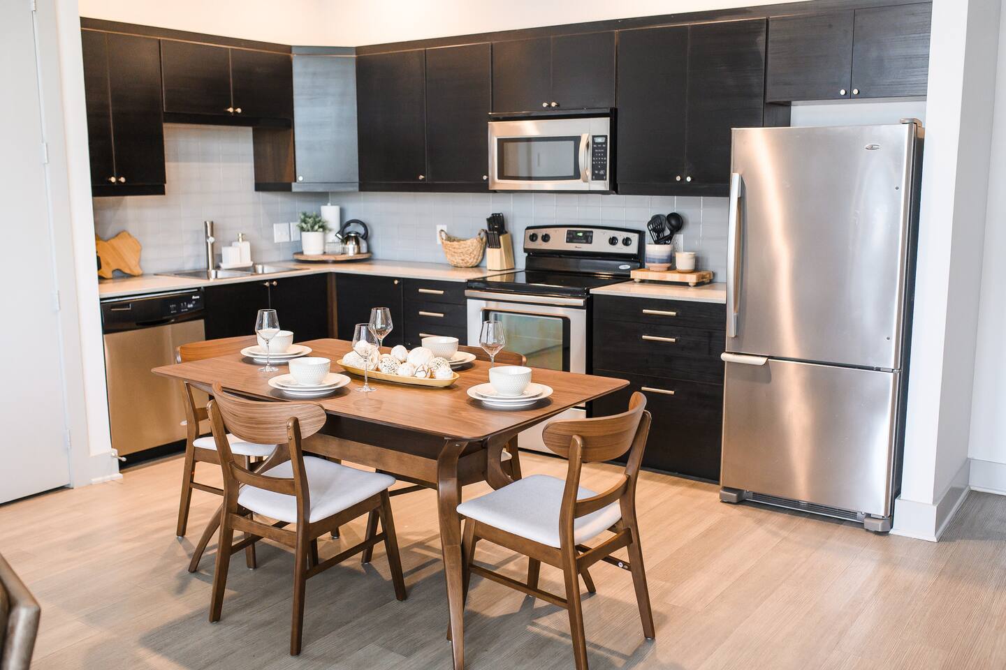 A full kitchen with stainless steel appliances makes dining in easy. Whether it’s meal prep or midnight snacks, you’re covered.