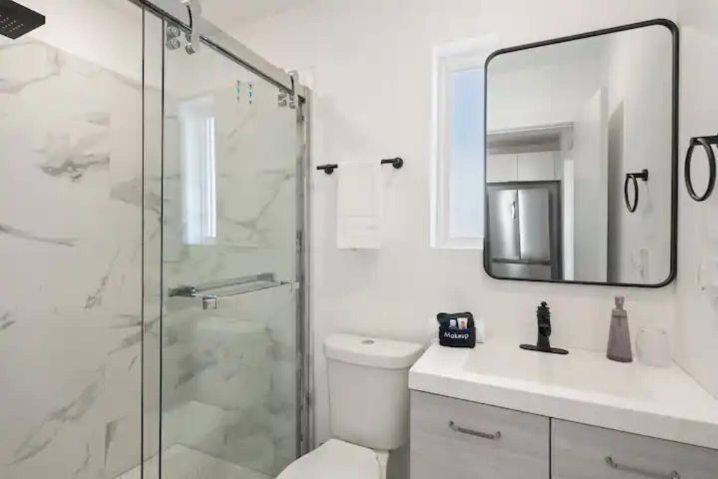 Bathroom: Indulge in a refreshing rain shower in the stylish bathroom. The bathroom is equipped with all the essentials to make your stay as comfortable as possible.