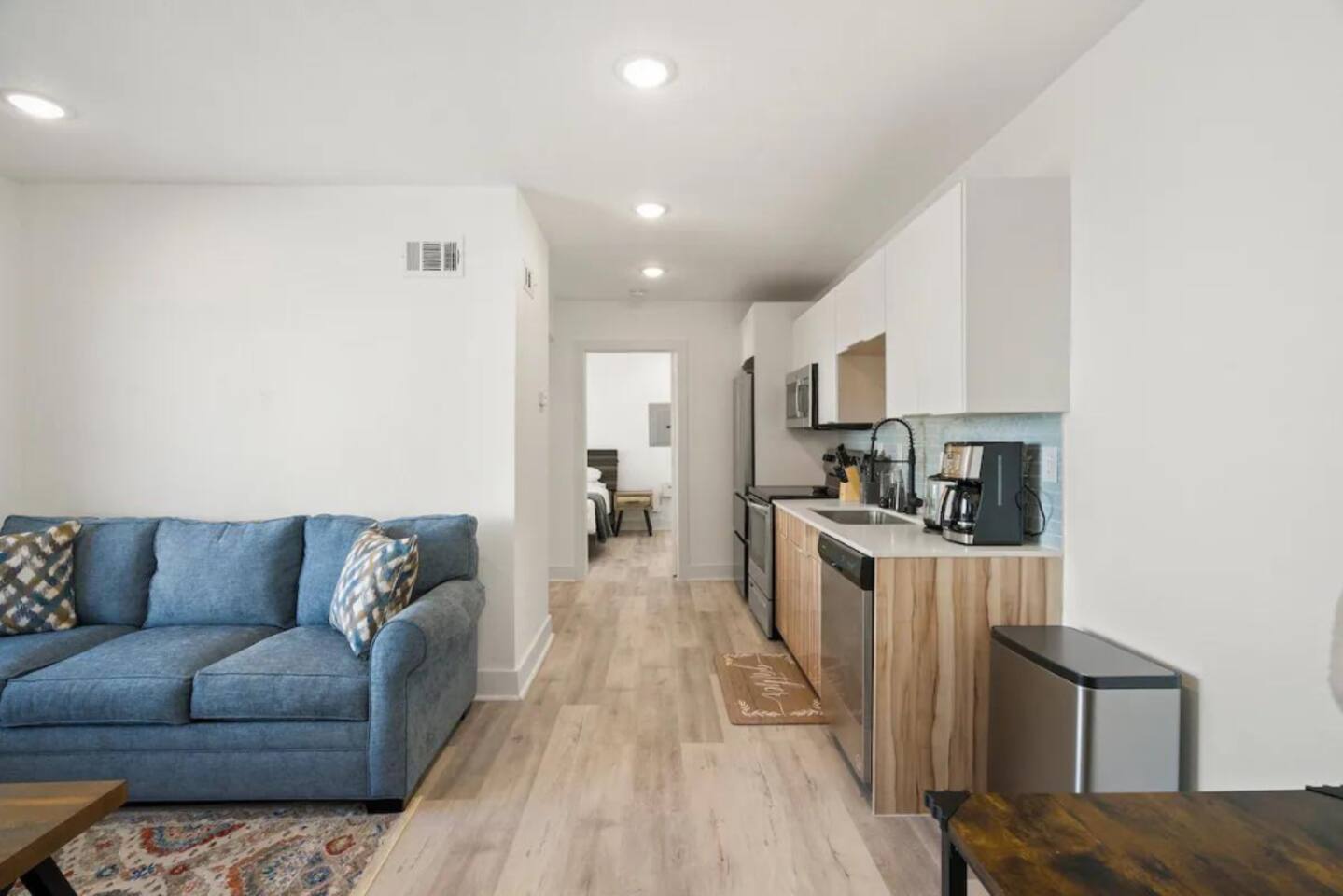 Livingroom: This inviting Livingroom is the perfect place to relax and unwind after a long day exploring Dallas. Sink into the plush sofa and watch your favorite shows on the flat-screen TV. The sofa is a sleeper sofa, so 2 people can sleep on it.