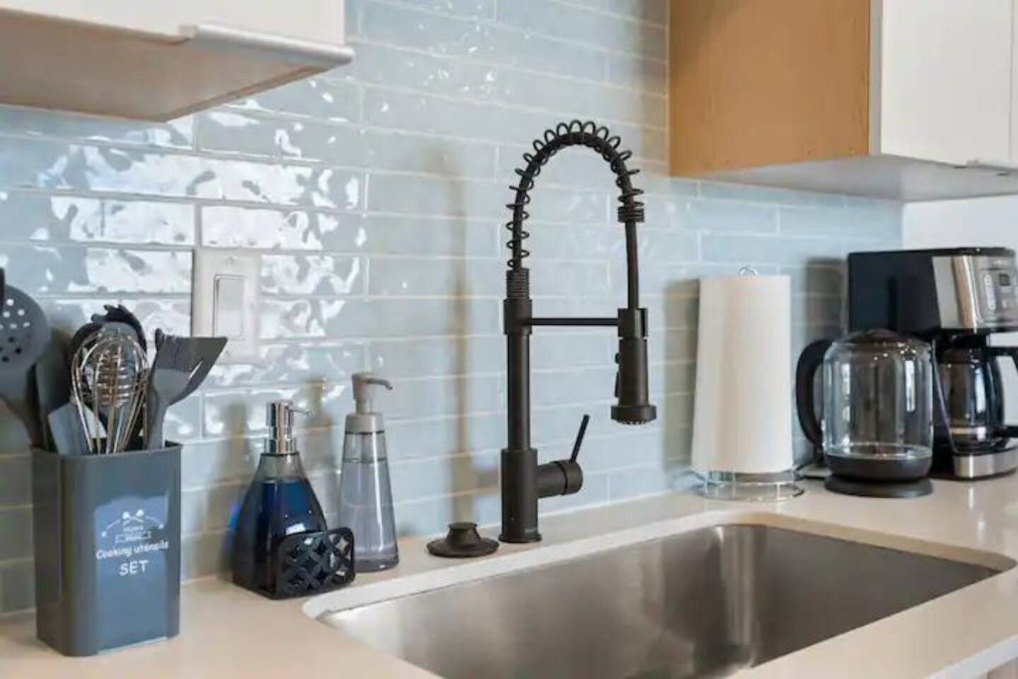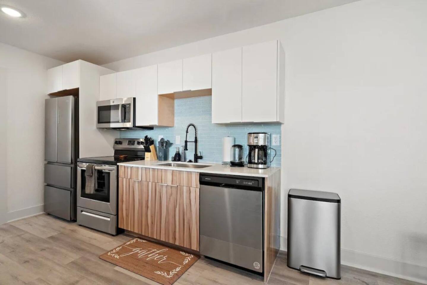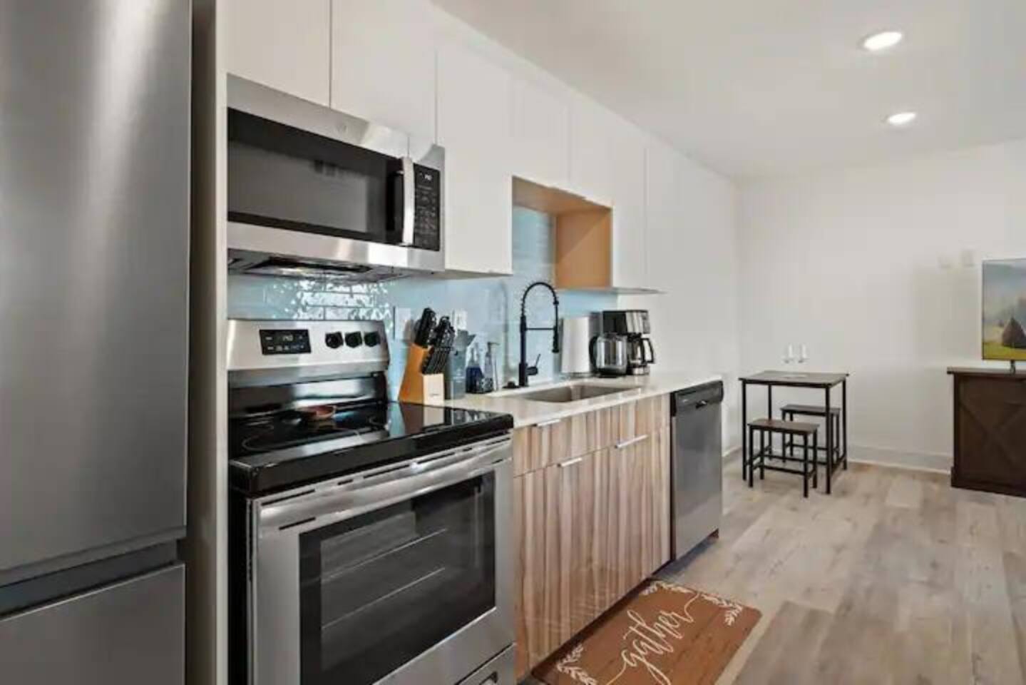 The kitchen is well-equipped, with modern, stainless-steel appliances and all you need to make your stay enjoyable!