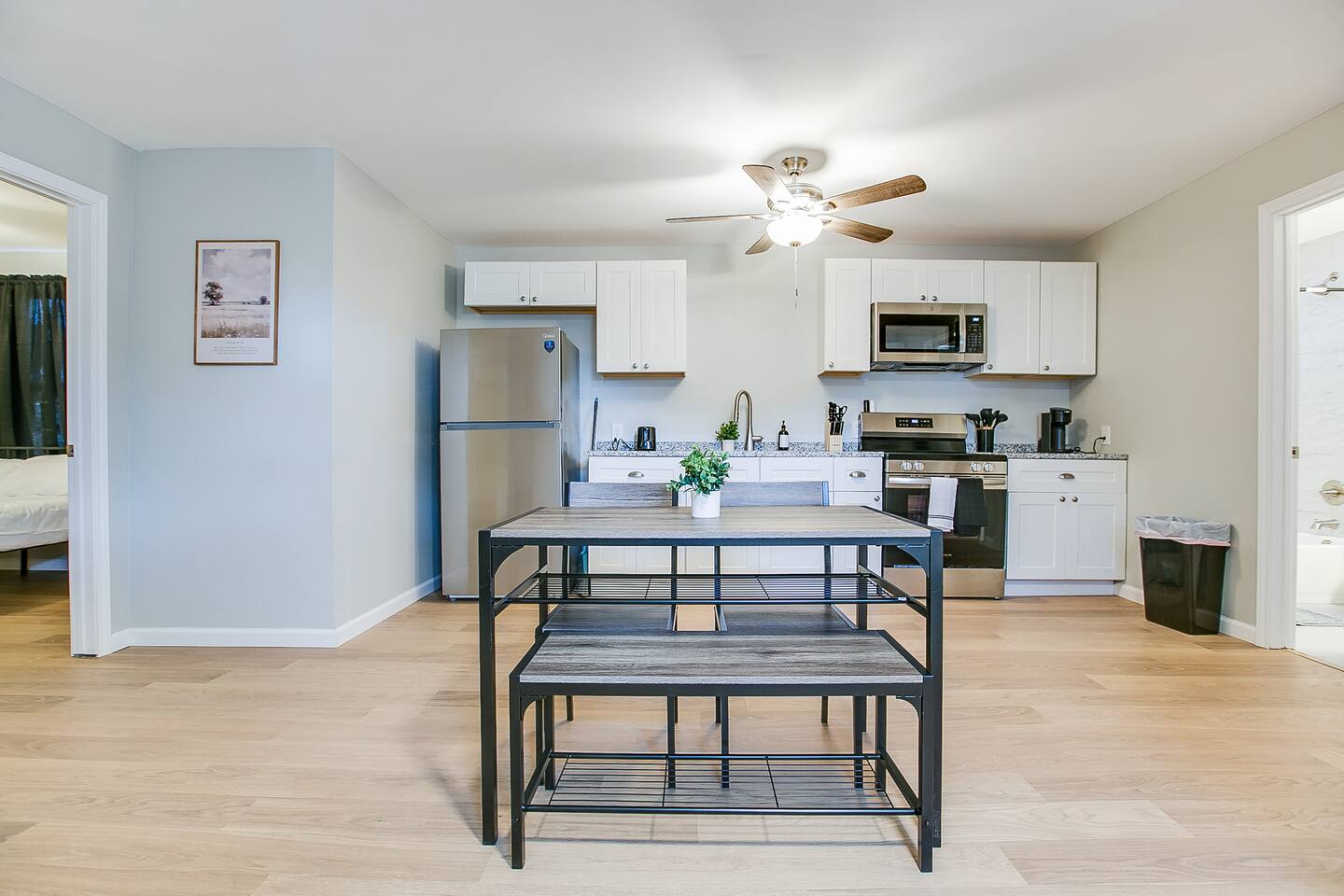 Both bedrooms are designed for restful sleep with comfortable beds and soft linens, while the two full bathrooms make mornings smooth and convenient 🛏️🛁. The layout gives guests privacy while still feeling connected and welcoming.